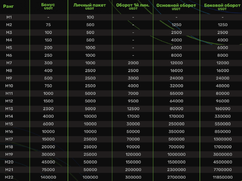 Матчинг бонус — вознаграждение в виде доли от бинарного дохода партнеров в вашей структуре (см.таблицу)