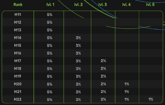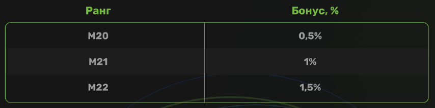 Инфинити бонус — распределение 3% среди лидеров, достигших высоких рангов (см. таблицу)