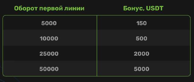 Лидерский бонус — по достижении результатов из таблицы ниже выплачивается соответствующий бонус (см.таблицу)