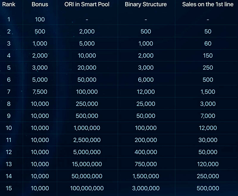 Партнерская программа доступна пользователям, которые зарегистрировались на платформе Orion Finance и подключились (купили пакет) к Smart Pool на 100 ORI или более.