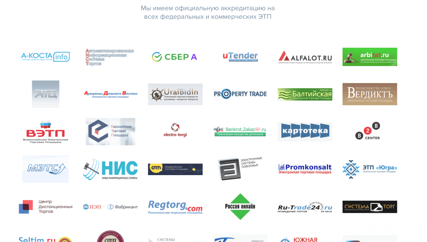 - Аккредитации на всех 45-ти российских площадках где совершаются торги. Видно что сильно заморочились.