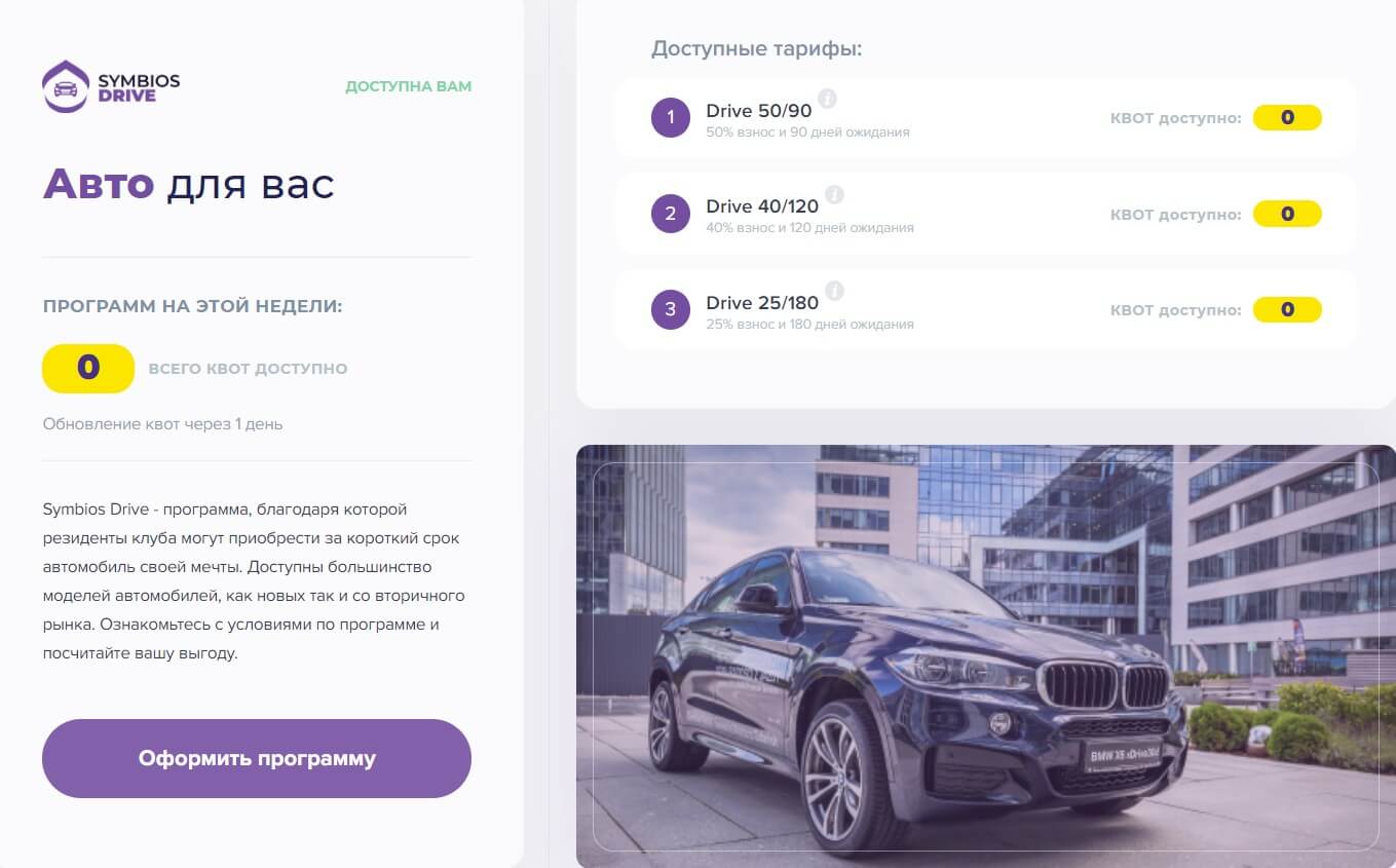 Получив всю сумму после периода ожидания, самостоятельно покупаете автомобиль. После этого будет необходимо выполнить условия маркетингового соглашения с клубов, в том числе отъездить на купленном авто 1 месяц с фирменными наклейками Symbios Club и записать видеоотзыв.